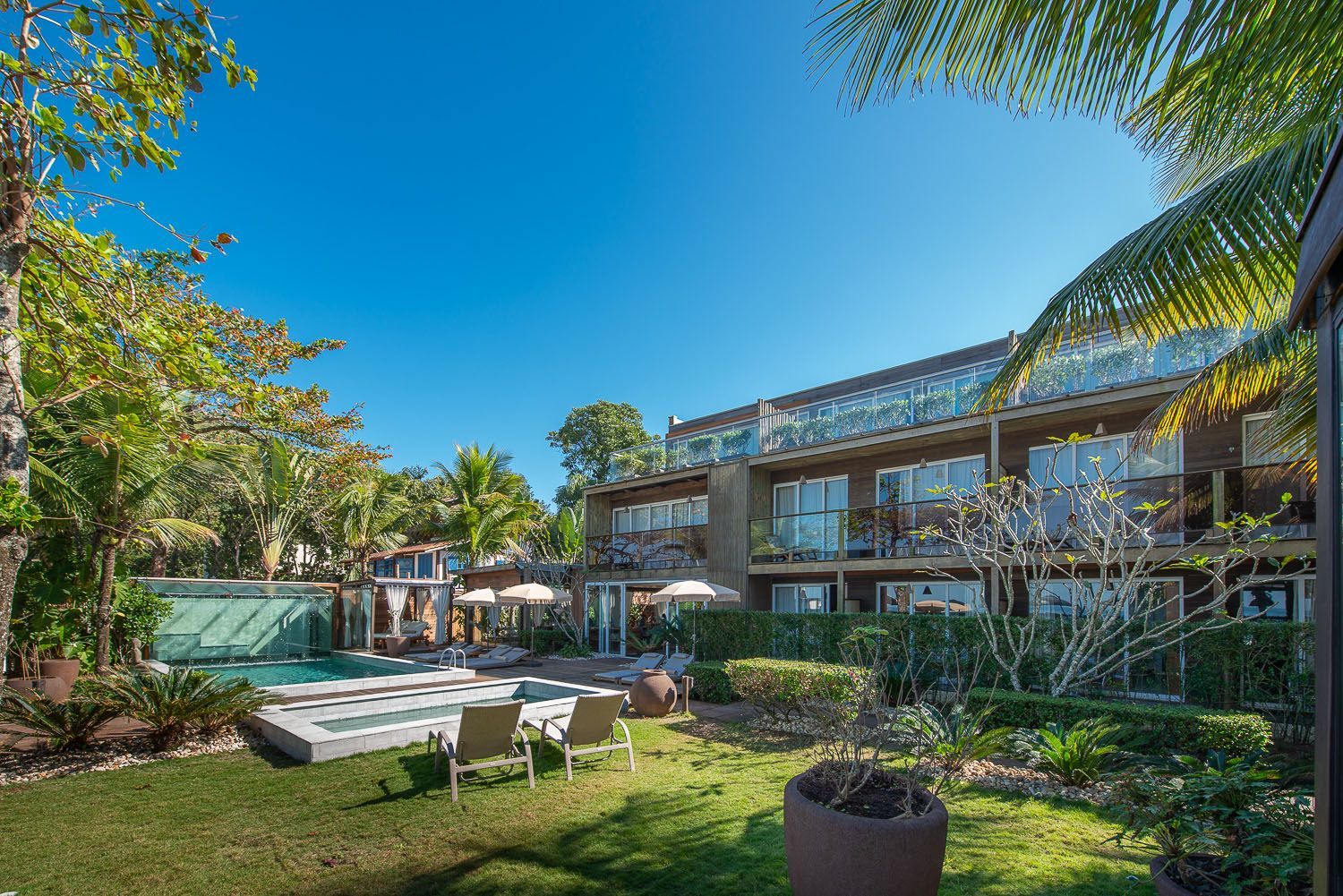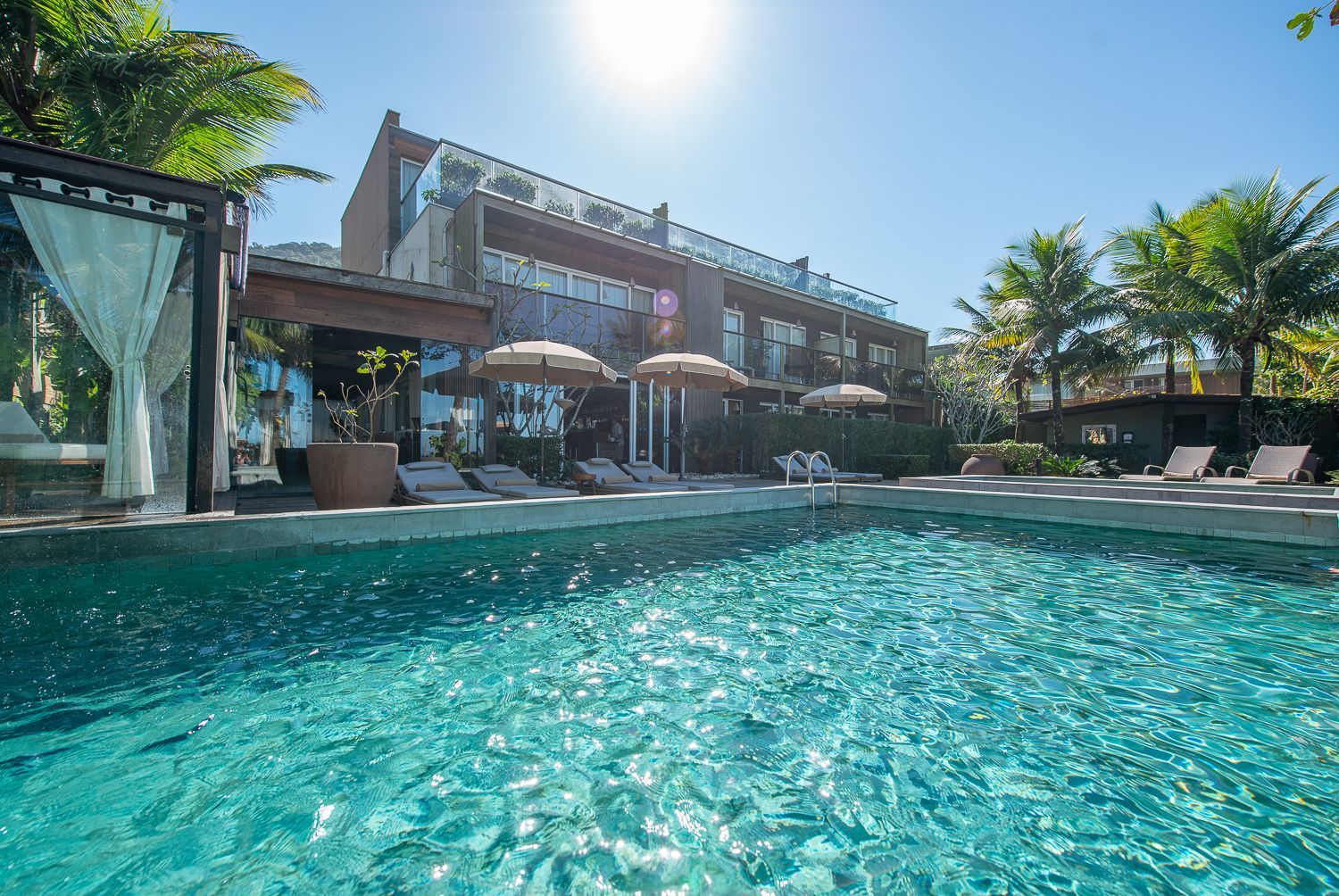 As exclusivas suítes da propriedade, em sua maioria com vista privilegiada do mar, oferecem ambientes sofisticados, onde cada espaço foi cuidadosamente projetado para o conforto e a intimidade dos casais, projetadas por Debora Aguiar.