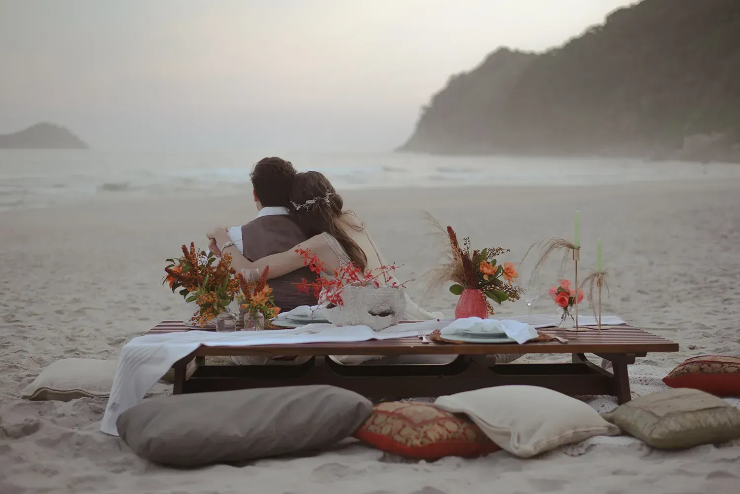 Praia de areia fina e clara, onde a brisa do mar valoriza a exuberante paisagem. No jardim frente ao mar do Nau Royal, o sol se põe entre o mar e a montanha, tornando-se assim o cenário perfeito para eternizar o momento mais feliz da vida dos casais.